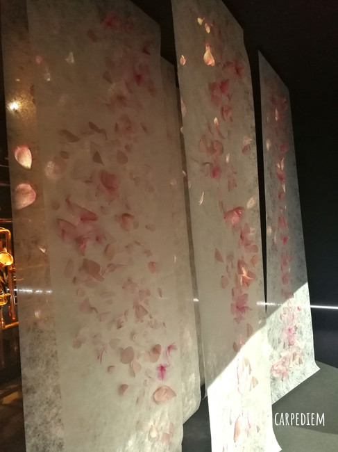 之後進入了黑箱子,如同原料香精需要放在暗玻璃瓶中防止揮發,這代表著屬於香水的空間。No.5 香水房中所有的燈都打在了中央的金屬管道中,而管道上卡著幾個像喇叭形狀的蓋連著裝滿代表品牌香水的No.5香水原料,遊人可以靠近喇叭孔親身聞聞香水原料的味道。我最喜歡的是依蘭依蘭、檀香與茉莉花的香味。應該這麼說吧在CHANEL香水中,我最喜歡的不是No.5,它給我的感覺就是成熟溫柔的女性,並不是我的性格。可能幾年後我會喜歡上No.5淡淡的花香味吧,誰知道?